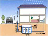 屋根などに降った雨をタンクに貯め、洗車や庭の水やりなどに利用する