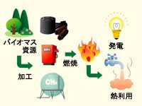 バイオマスは、成長の過程で二酸化炭素を吸収する性質を持っているので、バイオマスを利用しながら、同時にこれを育成することで、燃焼時に起きる大気中の二酸化炭素増加を抑制することができます |
