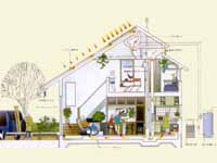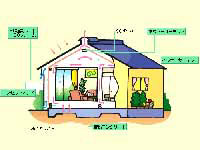 設置する角度は、真南で勾配約30度がもっとも良いが、角度がずれても大きく変わらず、3.1kwhシステムで年間約3000〜3500kw発電し、一般家庭の約一年分に匹敵する(石油、約700リットル) |