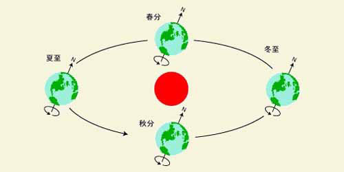 | ◆太陽からは、光と熱がたえまなく放射され、地球にふりそそいでいますが、地球の自転により昼夜があり、公転面と地軸がある一定の傾きをもっているため季節の変化があります。 |