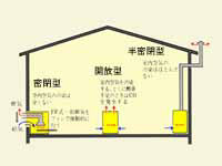 燃焼器具には、開放型燃焼器具、半密閉型燃焼器具、密閉型燃焼器具の3種類があります |
