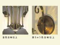 アンティックなインテリアには欠かせない古美仕上げは、インテリア商品をはじめ、装飾品や美術工芸品、照明器具等数多くの仕上げに使われています
