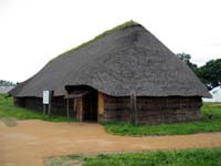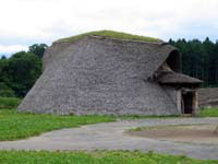 円形や角の丸い長方形の平面を50センチほど掘り下げ、その上に木で骨を組み草を葺いた屋根をもうける