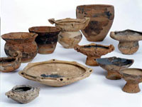 開口部は低い出入り口のほかは煙だし程度で、内部の中央または脇の部分に炉が設置されていた |
