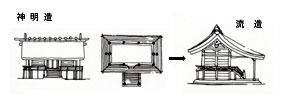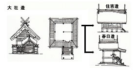 また高床住居はその後、神社寺院などの建築に結びついていった |