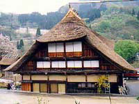 雪を自然に落下させるために屋根を急傾斜にしたことから生まれたもので、1・2階は住居3階以上は物置、屋根は茅葺(かやぶき)、切妻造が特徴で、岐阜県白川村から富山県平村にいたる庄川流域に分布、1995年世界遺産に登録された