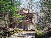 軽井沢の地、三方をせせらぎに囲まれた小高い丘の頂きに建つ