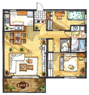 その壁面には一体型の収納ユニット“ドイツのIP20”を使いすっきりと広く使い易いリビングを作ってみました