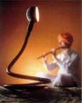セードが二重になっていて、光の方向を変化することができます。高さが2300oもあり、日本の住宅向きではありませんが、大空間では、すばらしいフォルムです。 |