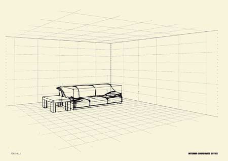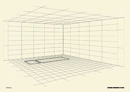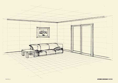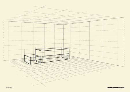 ■平面図からパースグリッドの床面に、エレメントの床への投影をグリッドを参考にして描きます