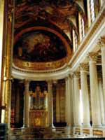 天井画はル・ブランの手によるルイ14世の栄光の生涯を古代風の世界で描いた大壁画がある |