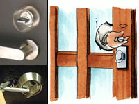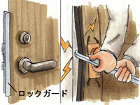 ドアの隙間などにバール等を差し込み、施錠部を強引にこじて開ける等、ドアの錠を破壊する手口をいいます