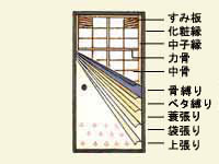 框材で周囲を固め、そこに中残や帯桟を入れて構成し、それ自体が構造体となる
