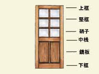 枠状の芯材の表面に、普通合板や化粧合板を張って一体とした軽量のドアである