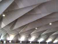 屋根膜は、外膜が0.8 mm と薄いため、太陽光の約5%を透過しますこのため、晴れた日の昼間であれば、照明なしでもゲームが行えます |