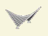 曲面は強い構造を持っていてその原理を利用して円筒形、球形、鞍形(H.Pシェル)等に曲げ剛性を持たせた構造