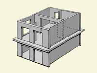 柱や梁がないので室内が有効に使え、ラーメンに比べ施工が簡単で5階程度の集合住宅に広く普及している構造 |