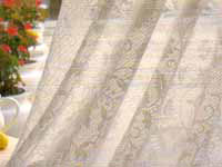 カーテン地等にデザイン的要素を高めるための加工法の1つで化学的な反応によって、レースのような透かしたデザインをつくる