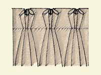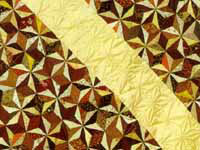 キルトというのは、わた入れという意味であり、保温性、重量感を出すために2枚の布の問に芯を入れそこが浮き出る模様になるよう縫うこと |