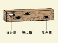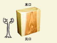 柱など木をたてに使うときは、元口を下に末口を上にします |