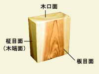 また、板材にしたとき繊維方向で厚みの薄い方を木端面ともいいます |